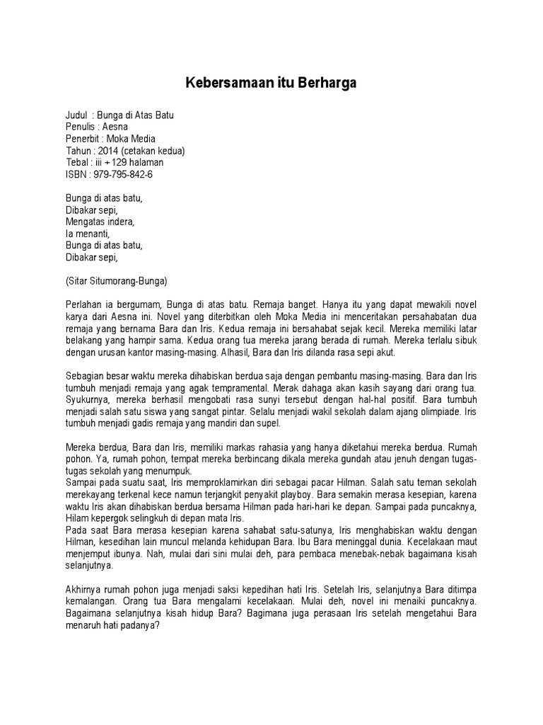 NOVEL - BUNGA DI ATAS BATU - PENERBIT MOKA MEDIA di Tokopedia Promo Pengguna Baru Cicilan 0 Kurir Instan. Juni 2014 Halaman. Iris yang baik Setelah kupertimbangkan masak.